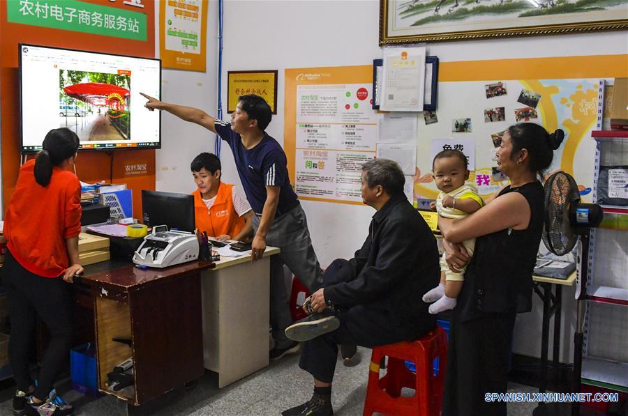 Imagen del 3 de septiembre de 2017 del residente Hu Maodong (3-i) seleccionando una carpa en la tienda en línea de Huang Bin, en la villa de Shuhe del condado de Shucheng, provincia de Anhui, en el este de China. El joven Huang Bin, de 29 a?os de edad, con parálisis cerebral, estableció un comedor después de graduarse de la escuela intermedia. En 2010, él comenzó una tienda de prendas de vestir en línea y mientras tanto trabajaba tiempo parcial en otras tiendas en línea. Tres a?os después, Huang Bin conoció a su esposa He Linqiong, una joven mujer de Sichuan, en el suroeste de China, a través del negocio del comercio en línea. En 2015, Huang se convirtió en un "socio" de la plataforma minorista en línea Taobao con la ayuda de su esposa y desde entonces han probado las mieles del negocio en línea. Mientras hacen sus propios negocios, ellos han ense?ado a la gente rural cómo hacer mejor uso de la internet en sus negocios. Bajo el patrón de "Internet+" y con las compras en línea más extendidas en las zonas rurales, el negocio de la pareja se vuelve cada a?o más floreciente. (Xinhua/Zhang Xiangyang)