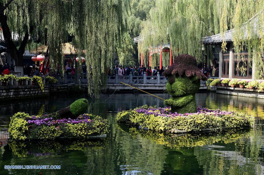 JINAN, noviembre 2, 2017 (Xinhua) -- Personas visitan las flores de crisantemo en el Parque Primavera de Baotu, en Jinan, ciudad capital de la provincia de Shandong, en el este de China, el 2 de noviembre de 2017. Más de 500 variedades de crisantemo son exhibidas en la 38 Exposición del Crisantemo del Parque Primavera de Baotu que permanecerá hasta el 25 de noviembre. (Xinhua/Li Ziheng)