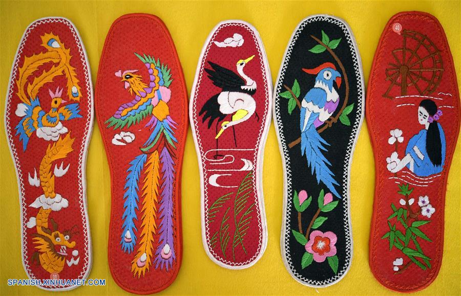 HUBEI, noviembre 2, 2017 (Xinhua) -- Vista de las plantillas bordadas Tujia, en el condado de Xuanen, en la Prefectura Autónoma Tujia de Enshi, provincia de Hubei, en el centro de China, el 2 de noviembre de 2017. El bordado fue una habilidad básica para las residentes en el pasado y muestra la cultura del grupo étnico Tijua. (Xinhua/Song Wen)