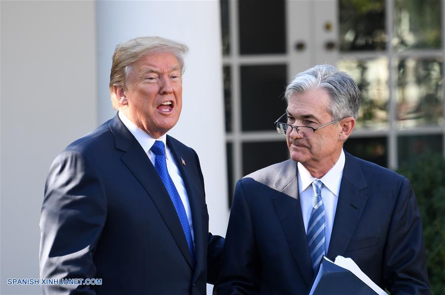 El presidente de Estados Unidos, Donald Trump (i), y el gobernador de la Reserva Federal, Jerome Powell (d), asisten a una ceremonia de nominación en el Jardín de las Rosas de la Casa Blanca, en Washington D.C., capital de Estados Unidos, el 2 de noviembre de 2017. (Xinhua/Yin Bogu)