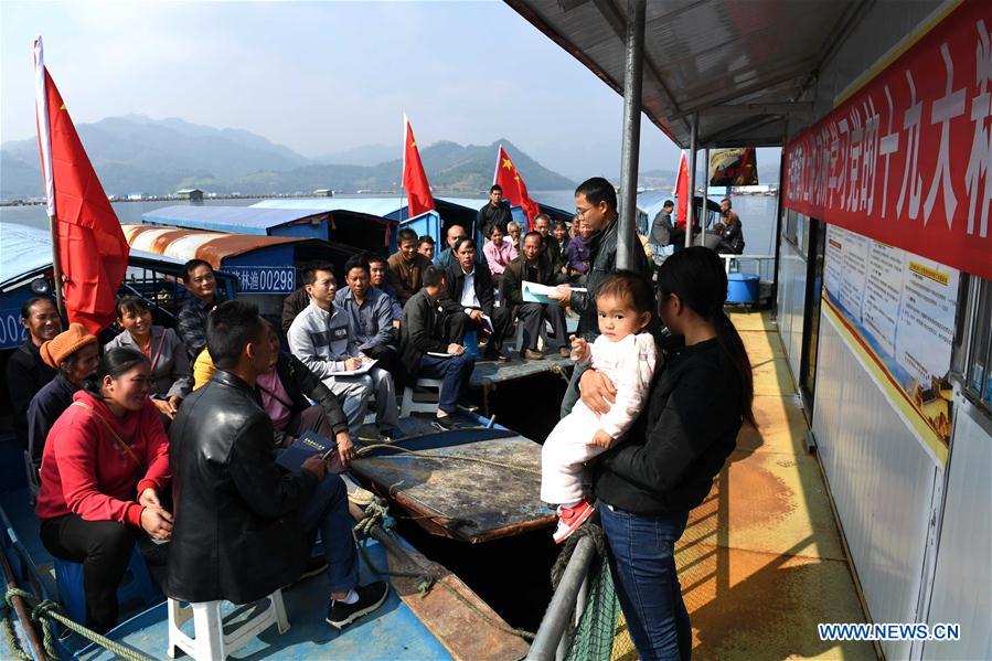 Unas 100 personas asisten a una actividad para divulgar el espíritu del XIX Congreso Nacional del Partido Comunista de China en Tianshengqiao, Longlin, región autónoma de Guangxi Zhuang, 1 de noviembre del 2017. [Foto: Xinhua]
