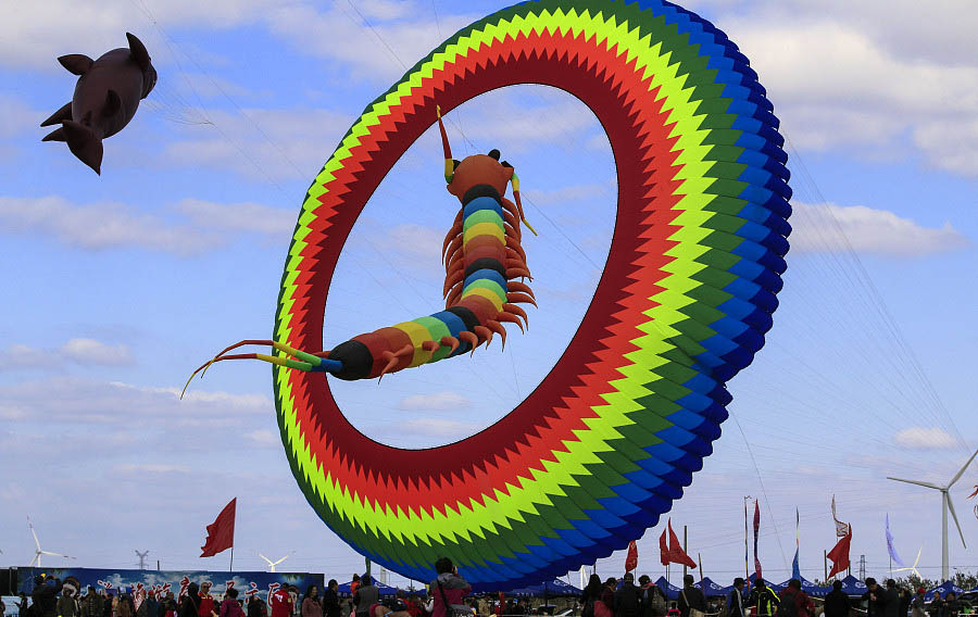 Una cometa colorida en la XVIII Cumbre International de Cometas de RudongKite, en sábado, en la provincia de Jiangsu. [Foto / VCG]