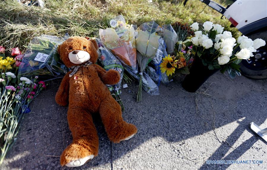 TEXAS, noviembre 7, 2017 (Xinhua) -- Flores son colocadas cerca del sitio donde un ocurrió un tiroteo, en Sutherland Springs, estado de Texas, Estados Unidos, el 6 de noviembre de 2017. Una "situación doméstica" fue parte de los motivos del tiroteo ocurrido el domingo en una iglesia de Texas en el que murieron al menos 26 personas, confirmó el lunes un agente del orden de Texas. (Xinhua/Li Ying)
