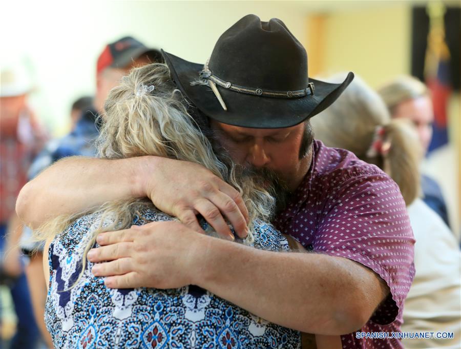 TEXAS, noviembre 7, 2017 (Xinhua) -- Personas asisten a un servicio en memoria de las víctimas de un tiroteo, en Sutherland Springs, estado de Texas, Estados Unidos, el 6 de noviembre de 2017. Una "situación doméstica" fue parte de los motivos del tiroteo ocurrido el domingo en una iglesia de Texas en el que murieron al menos 26 personas, confirmó el lunes un agente del orden de Texas. (Xinhua/Li Ying)