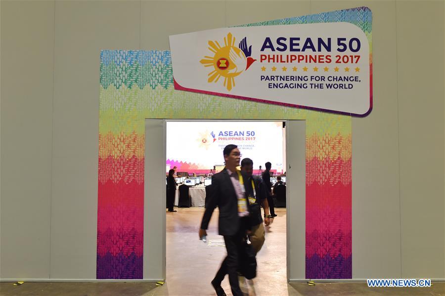 Febril actividad en el Centro de Prensa de la Cumbre de la Asociación de Naciones del Sudeste Asiático (ASEAN, por sus siglas en inglés) y reuniones conexas en Manila, Filipinas, 12 de noviembre del 2017. (Foto: Qin Qing)