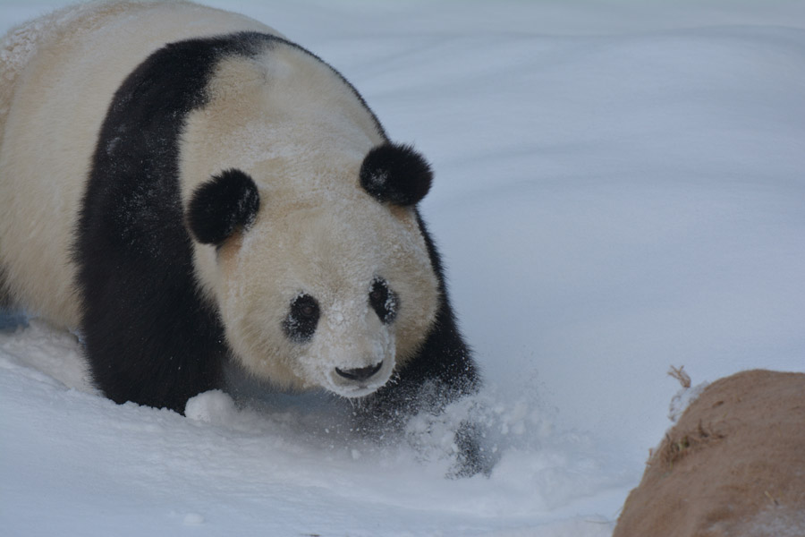 Sijia, una panda gigante de 11 a?os, juega en la estación de esquí de Yabuli, provincia de Heilongjiang, noreste de China. [Foto: proporcionada]