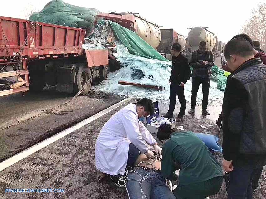 HEFEI, 15 nov (Xinhua) -- Al menos 18 personas murieron hoy miércoles en un accidente de autopista con decenas de vehículos involucrados, en la provincia oriental china de Anhui, informó la policía de tráfico local.