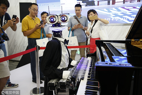 Robot toca el piano en la Conferencia Mundial de Robots 2017. Beijing, 25 de agosto del 2017. [Foto: VCG]