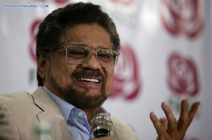Luciano Marín Arango, alias "Iván Márquez", participa durante una conferencia de prensa sobre el fallo de la Corte Constitucional de Colombia a la Jurisdicción Especial para la Paz (JEP), en Bogotá, capital de Colombia, el 16 de noviembre de 2017. (Xinhua/Luisa González/COLPRENSA)