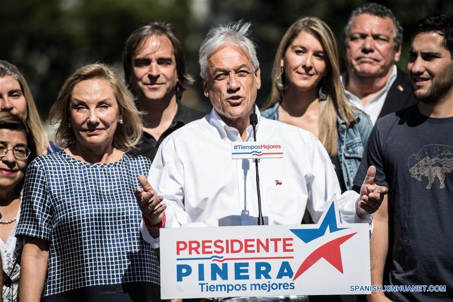 SANTIAGO, noviembre 19, 2017 (Xinhua) -- El candidato a la presidencia de Chile por la coalición Chile Vamos, Sebastián Pi?era (frente), participa en una conferencia de prensa luego de emitir su voto en un centro electoral en la Escuela República de Alemania en Santiago, capital de Chile, el 19 de noviembre de 2017. Las mesas electorales para las elecciones presidenciales de Chile abrieron el domingo a las 8:00 hora local, tal y como estaba previsto, a lo largo de todo el país. Más de catorce millones de chilenos están llamados a las urnas para decidir quién presidirá el país en el periodo entre 2018 y 2022. (Xinhua/Jorge Villegas)