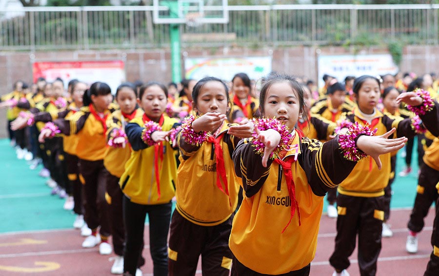 Beijing,23/11/2017(El Pueblo en Línea)-Cada vez hace más frío. Para energizarse, los estudiantes de diversas provincias chinas realizan diversos ejercicios físicos.La variedad va más allá lo imaginado.Estudiantes de primaria hacen ejercicios integrandoelementos de la ópera de Pekín y la poesía clásica china en Guiyang, provincia de Guizhou, 14 de noviembre del 2017. [Foto: VCG]