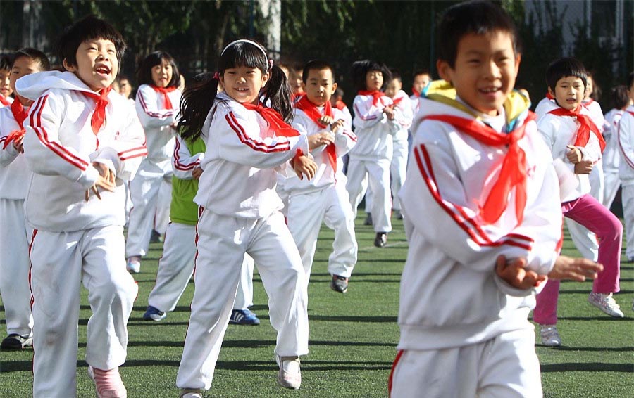 Beijing,23/11/2017(El Pueblo en Línea)-Cada vez hace más frío. Para energizarse, los estudiantes de diversas provincias chinas realizan diversos ejercicios físicos.La variedad va más allá lo imaginado.Estudiantes de primaria bailan al estilo Gangnam en Beijing, 31 de octubre del 2012. [Foto: VCG]