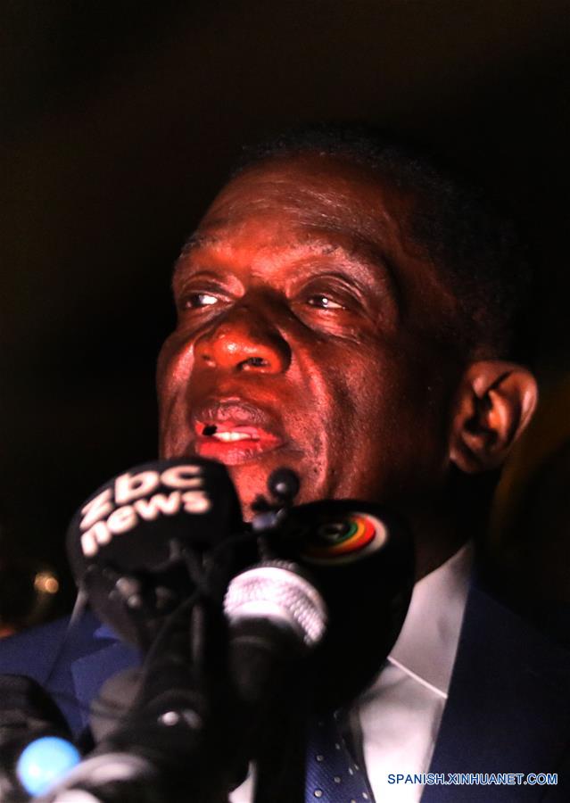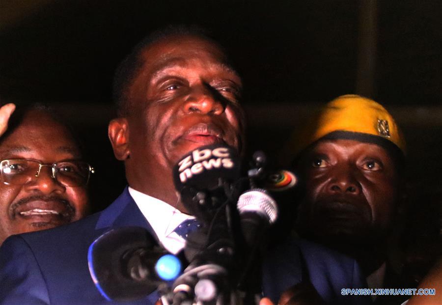HARARE, 22 nov (Xinhua) -- El próximo presidente de Zimbabwe, Emmerson Mnangagwa, fue recibido con gritos de entusiasmo por sus seguidores en la sede del partido Unión Nacional Africana de Zimbabwe-Frente Patriótico (ZANU-PF, por sus siglas en inglés) durante su primera aparición pública después de ser destituido del cargo de vicepresidente por el ex presidente Robert Mugabe el 6 de noviembre.