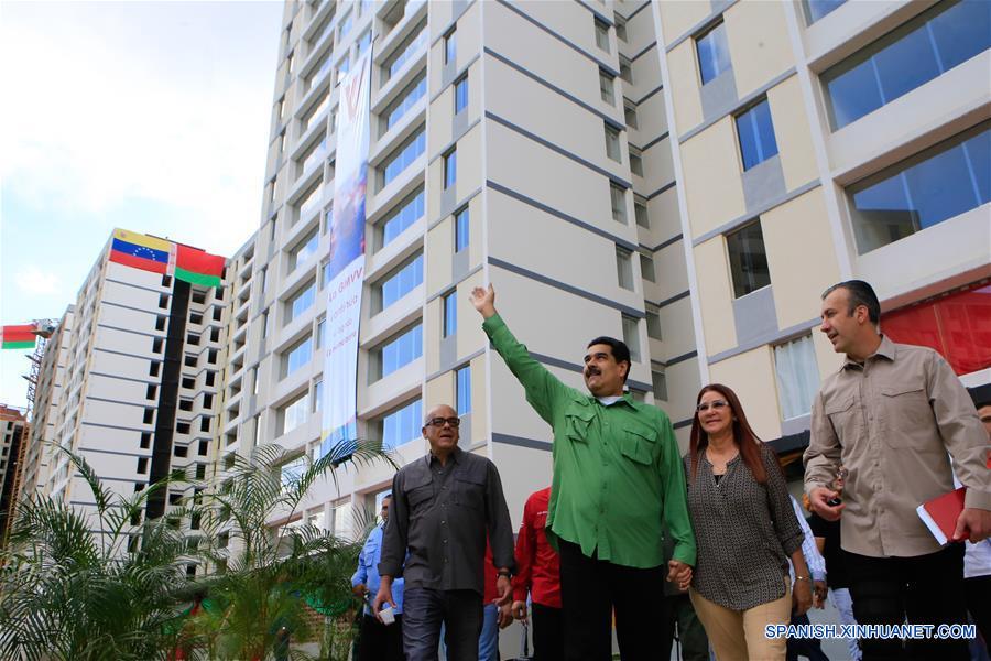 CARACAS, noviembre 23, 2017 (Xinhua) -- Imagen cedida por la Presidencia de Venezuela, del presidente venezolano, Nicolás Maduro (2-i) y su esposa Cilia Flores (2-d), participando durante la inauguración del centro de educación inicial "Simoncito Generala Manuela Sáenz" en el marco del acto de entrega de 240 apartamentos, en la parroquia El Valle, en Caracas, Venezuela, el 23 de noviembre de 2017. El presidente de Venezuela, Nicolás Maduro, denunció el jueves que la empresa de servicios financieros Euroclear mantiene "secuestrados" unos 450 millones de dólares estadounidenses que su gobierno tiene destinados para la compra de medicinas y alimentos. (Xinhua/Presidencia de Venezuela)