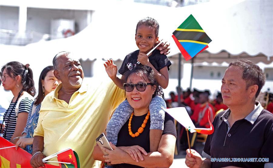 DAR ES SALAAM, noviembre 26, 2017 (Xinhua) -- Personas se reúnen para despedir al buque hospital de la Armada de China, Arca de la Paz, en Dar es Salaam, Tanzania, el 26 de noviembre de 2017. El presidente de Tanzania, John Magufuli, agradeció el domingo a los doctores chinos por tratar a más de 6,000 pacientes en el buque hospital de la Armada de China, Arca de la Paz, durante su estancia de ocho días en Dar es Salaam, Tanzania. (Xinhua/Jiang Shan)