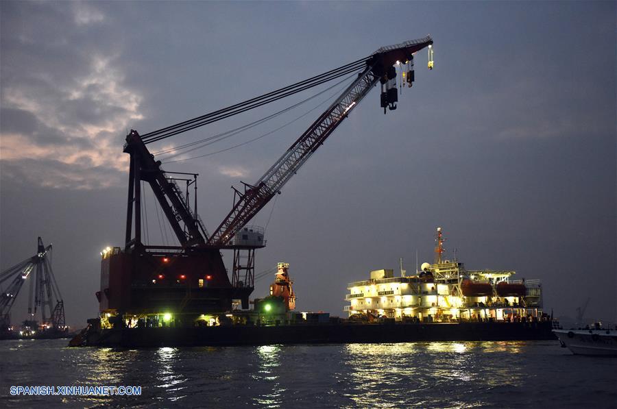 Rescatistas trabajan en el sitio del hundimiento de un buque de carga frente la costa de la provincia de Guangdong, en el sur de China, el 28 de noviembre de 2017. (Xinhua/Lu Hanxin)