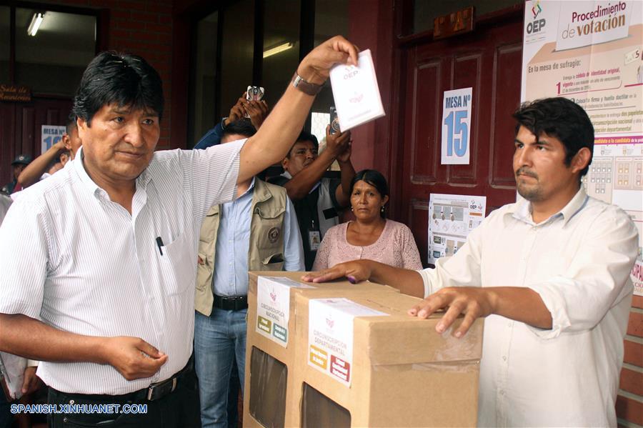 COCHABAMBA, diciembre 3, 2017 (Xinhua) -- El presidente boliviano, Evo Morales (i), se prepara para emitir su voto en un centro electoral en Cochabamba, Bolivia, el 3 de diciembre de 2017. El presidente Evo Morales subrayó el domingo que las elecciones judiciales, las segundas de la historia boliviana, son inéditas y únicas en el mundo, al tiempo de considerar que el camino para cambiar la justicia en Bolivia es eligiendo a las máximas autoridades del órgano Judicial. "Sé que va haber mucha participación, porque la única forma de cambiar y hacer una mejor justicia en Bolivia es participando en esta elección", afirmó a los periodistas Morales tras emitir su voto en el municipio de Villa Tunari, en el departamento central de Cochabamba, donde habitualmente cumple su derecho democrático. (Xinhua/Jonás Alegre/ABI)