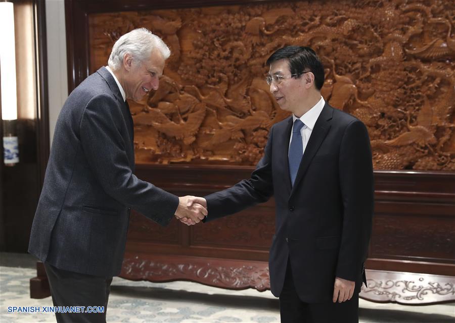 Durante su reunión con De Villepin, Wang dijo que China aprecia mucho sus relaciones con Francia y Europa y pidió a ambas partes contribuir a una gobernanza de Internet justa.