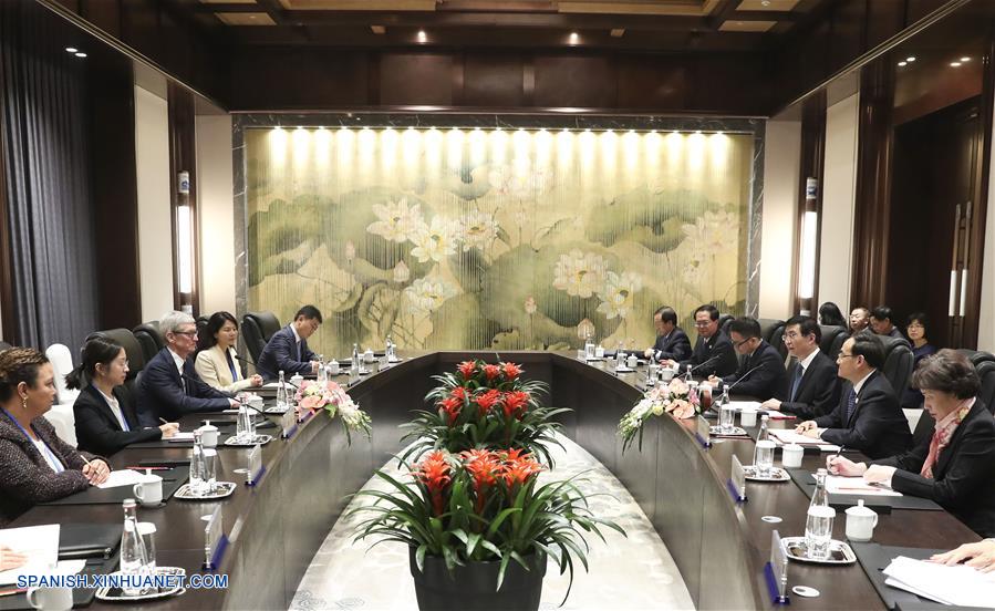 En su reunión con Cook, Wang dijo que China y Estados Unidos disfrutan de un amplio interés común en el área de Internet y pidió a las dos partes mantener la tendencia de la cooperación actual y trabajar juntas en la construcción de una comunidad de futuro compartido en el ciberespacio.