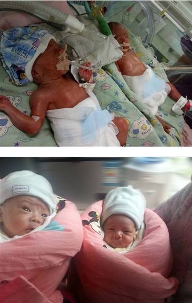Los gemelos prematuros nacidos en Sichuan se recuperan en casa