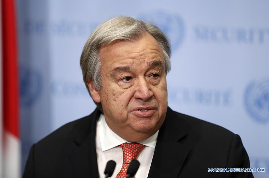 El secretario general de la Organización de las Naciones Unidas (ONU), António Guterres, lee un comunicado en la sede de la ONU en Nueva York, Estados Unidos, el 6 de diciembre de 2017. El secretario general de la ONU, António Guterres, dijo el miércoles que estaba "contra cualquier medida unilateral que pondría en peligro la perspectiva de la paz para israelíes y palestinos". Hizo las observaciones inmediatamente después de que el presidente de Estados Unidos, Donald Trump, anunció formalmente su reconocimiento de Jerusalén como la capital de Israel. (Xinhua/Li Muzi)