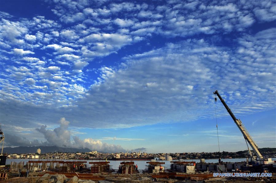 Imagen del 27 de noviembre de 2017, de una vista del proyecto de modernización del puerto de Santiago de Cuba, Cuba. (Xinhua/Joaquín Hernández)