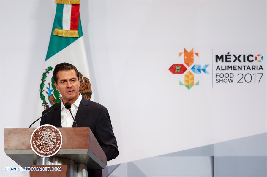 El presidente mexicano, Enrique Pe?a Nieto, pronuncia un discurso durante la ceremonia de inauguración de la Expo México Alimentaria 2017 Food Show, en la Ciudad de México, capital de México, el 7 de diciembre de 2017. (Xinhua/Francisco Ca?edo)