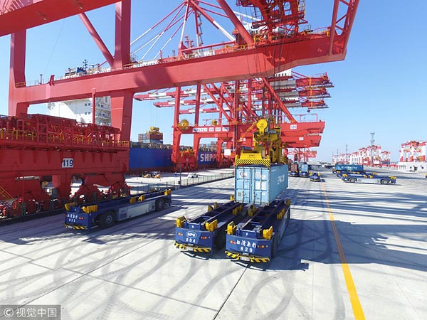 Terminal de contenedores automatizados en Shanghai, 1 de noviembre del 2017. [Foto: VCG]