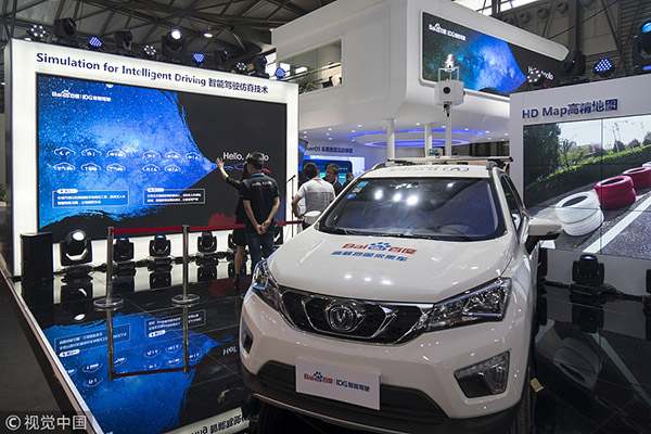 Baidu presenta su coche inteligente en el Consumer Electronic Show Asia 2017 de Shanghai, 7 de junio del 2017. [Foto: VCG]