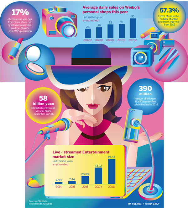 El a?o pasado, su cuenta en Weibo alcanzó las 100.000 visitas diarias. Entusiasmada, estableció una tienda de cosméticos en Taobao, que genera alrededor de 3 millones de renminbi mensuales. La tienda de ropa, que cerró en el 2016 y reabrió este a?o,también vende cientos de miles de renminbi al mes.