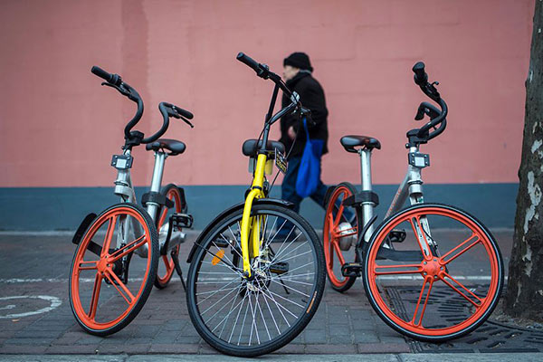 Bicicletas Mobike y Ofo parqueadas en Shanghai, 1 de febrero del 2017. [Foto: VCG]