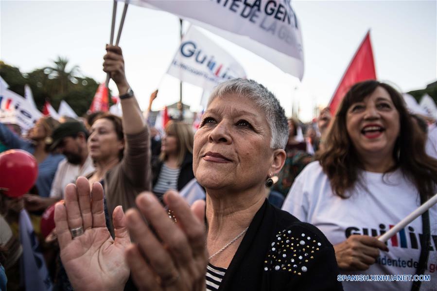 Simpatizantes del candidato presidencial por la alianza Nueva Mayoría, Alejandro Guillier, participan durante su acto de cierre de campa?a regional, en la ciudad de Valparaíso, Chile, el 13 de diciembre de 2017. Unos 14 millones de chilenos, incluidos los 40,000 que viven en el exterior, están convocados para elegir el domingo próximo a un nuevo presidente para los próximos cuatro a?os en la segunda vuelta electoral presidencial que medirá al oficialista Alejandro Guillier con el exmandatario Sebastián Pi?era. (Xinhua/Jorge Villegas)