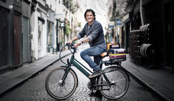 El artista, junto a la bicicleta que le ha proporcionado tantos éxitos - ABC