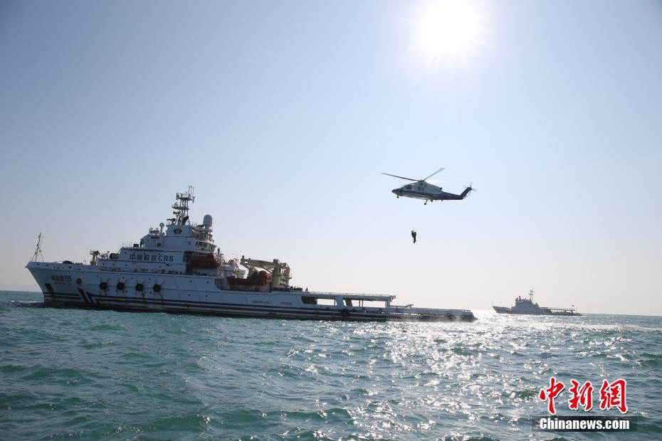 Un helicóptero sobrevuela un buque de rescate durante un ejercicio en Sanya, provincia de Hainan, el 19 de diciembre. [Foto / China Daily]