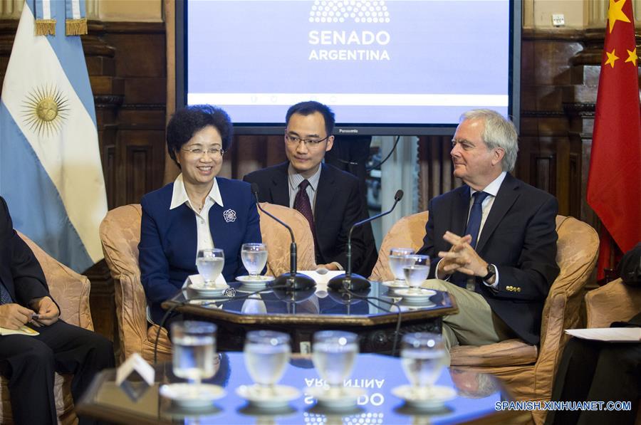 BUENOS AIRES, diciembre 19, 2017 (Xinhua) -- Song Xiuyan (i), miembro del Comité Central del Partido Comunista de China (PCCh) y vicepresidenta de la Federación Nacional de Mujeres de China, se reúne con el senador Federico Pinedo (d), presidente provisional del Senado argentino, en el Congreso Nacional, en Buenos Aires, Argentina, el 19 de diciembre de 2017. Song Xiuyan, miembro del Comité Central del PCCh y vicepresidenta de la Federación Nacional de Mujeres de China, se reunió con los representantes de diferentes partidos durante su visita a Argentina del 17 al 19 de diciembre, con el propósito de presentar los valores y logros del XIX Congreso Nacional del Partido Comunista de China (PCCh), celebrado el pasado mes de octubre en Beijing. Song introdujo los principales espíritus y mayores logros del XIX Congreso Nacional del PCCh a varios ámbitos argentinos, incluyendo representantes de los partidos, senadores, expertos de centros de pensamiento y medios de comunicación, entre otros. (Xinhua/Martín Zabala)