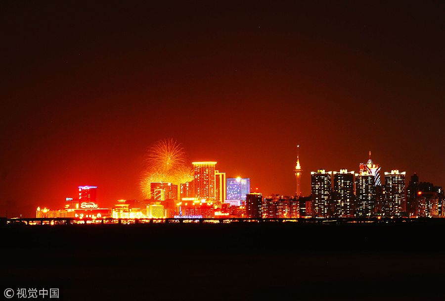 Foto del 20 de diciembre muestra las luces que brillan a lo largo del puente Hong Kong-Zhuhai-Macao. [Foto / VCG]