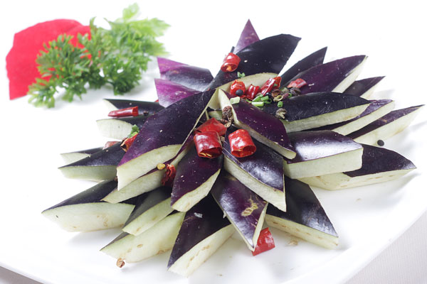 Un popular plato berenjena semielaborado se exhibe en Jinan, provincia de Shandong, 9 de julio del 2011. [Foto: VCG]