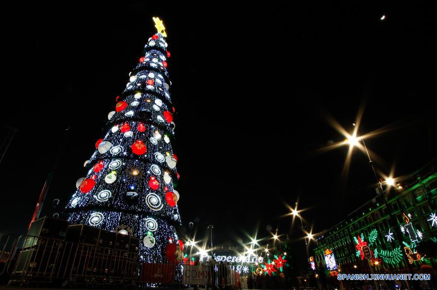 CIUDAD DE MEXICO, diciembre 24, 2017 (Xinhua) -- La luna brilla sobre el Arbol de Navidad instalado en el Zócalo de la Ciudad de México, capital de México, el 24 de diciembre de 2017. (Xinhua/Francisco Ca?edo)