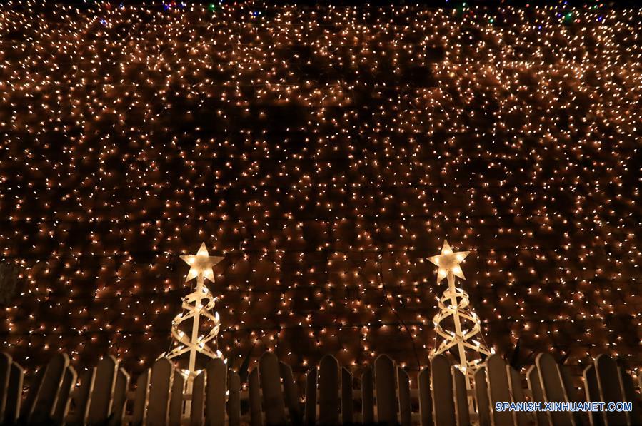 Imagen del 24 de diciembre de 2017, de decoraciones y luces navide?as encendidas frente a una casa durante la Navidad, en Los Angeles, Estados Unidos. (Xinhua/Li Ying)