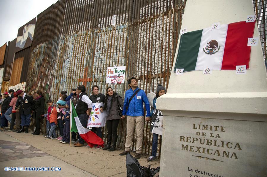 Imagen del 17 de febrero de 2017 de personas participando durante una protesta contra las políticas migratorias del presidente estadounidense, Donald Trump, frente a la frontera con Estados Unidos, en el Parque de la Amistad en Playas de Tijuana, México. La relación con algunos países de América Latina y el Caribe sufrió un retroceso durante el primer a?o de gobierno del presidente estadounidense, Donald Trump, especialmente con Cuba, México y Venezuela. Con México enfrenta la renegociación del acuerdo comercial que mantienen junto con Canadá, a iniciativa de Trump, quien considera que ha perjudicado a su país e incluso ha anunciado que podría abandonarlo, además de que pretende construir un muro a lo largo de la frontera común y que lo pague México, para frenar el tráfico de migrantes y de drogas a su país. En Cuba, Trump llegó a trastocar significativamente los avances alcanzados para restablecer la relación y revirtió la política de apertura iniciada por Barak Obama, restringiendo la visita y los negocios de estadounidenses con la isla, además de la crisis suscitada por supuestos "ataques acústicos" contra el personal diplomático, que llevó a Washington a reducir de manera sustancial las funciones de su embajada en La Habana. En tanto, el gobierno estadounidense impuso una serie de sanciones al gobierno venezolano que llegaron hasta el presidente Nicolás Maduro y la estatal Petróleos de Venezuela (PDVSA), así como ministros y ex funcionarios, congelando activos e impidiendo a los estadounidenses realizar transacciones con los sancionados. (Xinhua/Raymundo Cisneros)