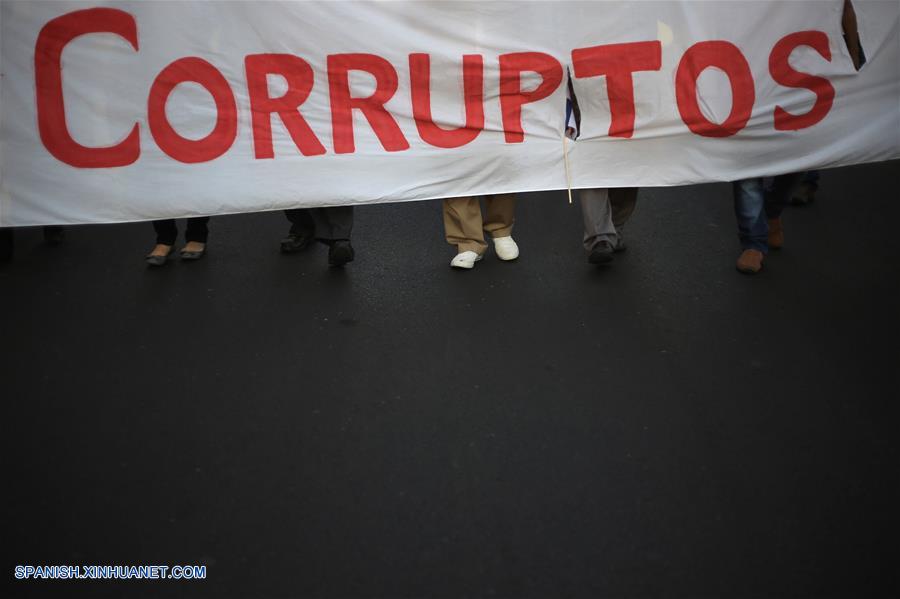 Imagen del 16 de febrero de 2017 de manifestantes participando durante una protesta organizada por diferentes movimientos sociales, contra la corrupción y la impunidad en el caso Odebrecht, en la Ciudad de Panamá, capital de Panamá. El escándalo provocado por la constructora brasile?a Odebrecht, que reconoce haber pagado multimillonarios sobornos a cambio de licitaciones, trastocó la vida política en América Latina y llegó hasta las más altas esferas del poder, abriendo cientos de investigaciones contra ministros, diputados y empresarios en la región. En Perú, el ex presidente Ollanta Humala (2011-2016) y su esposa están en prisión preventiva y sobre el ex mandatario Alejandro Toledo (2001-2006) hay una orden de captura y pedido de extradición desde Estados Unidos. En Ecuador, su vicepresidente sin funciones, Jorge Glas, fue sentenciado a seis a?os de prisión por asociación ilícita tras recibir supuestamente 13,5 millones de dólares estadounidenses en sobornos de la constructora. Brasil es el otro país donde Odebrecht ha dejado más víctimas, aunque es apenas un capítulo de la Operación Lava Jato que investiga los sobornos pagados por grandes constructoras a partidos y políticos para obtener licitaciones en la estatal petrolera Petrobras y en el que se ve involucrado el ex presidente Luiz Inácio Lula da Silva (2003-2010). (Xinhua/Mauricio Valenzuela)