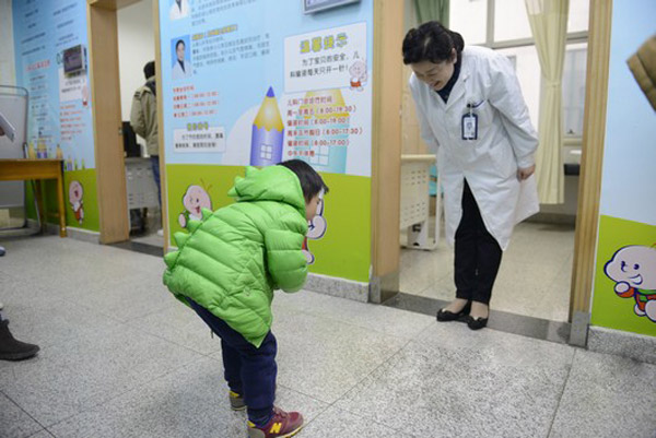 Un paciente de tres a?os se inclina ante un médico en Wuhan, provincia de Hubei, 7 de diciembre del 2017. [Foto: xinhuanet]