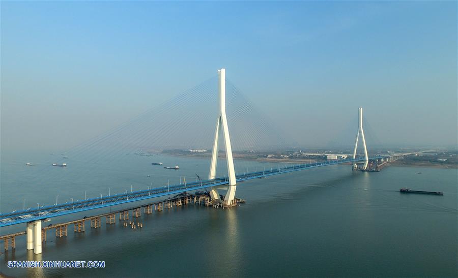 WUHAN, 28 dic (Xinhua) -- El puente sobre el río Yangtse de Zhuankou, el más ancho que cruza este cauce, se abrió hoy jueves al tráfico.
