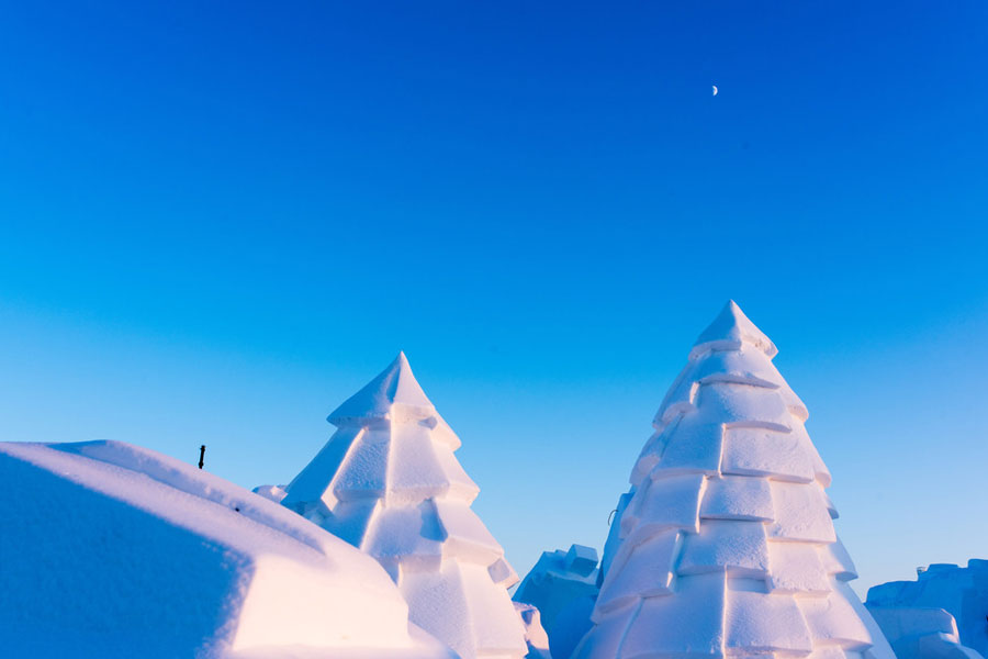 Harbin,29/12/2017(El Pueblo en Línea)-Dos peque?as torres blancas con aspecto de árboles de Navidad se exhiben en el “Mundo del Hielo” de la ciudad de Harbin, provincia de Heilongjiang, 26 de diciembre del 2017. [Foto: IC]