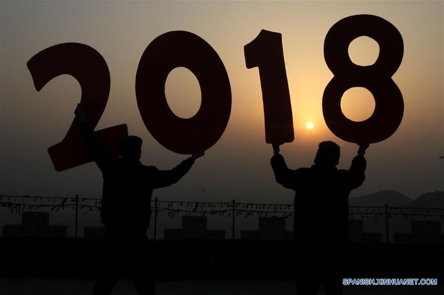 HEBEI, enero 1, 2018 (Xinhua) -- Personas observan la primera salida del sol del A?o Nuevo, en la cima de una monta?a en la zona escénica de Mingshan, en el distrito de Yongnian en Handan, en la provincia de Hebei, en el norte de China, el 1 de enero de 2018. (Xinhua/Hu Gaolei)