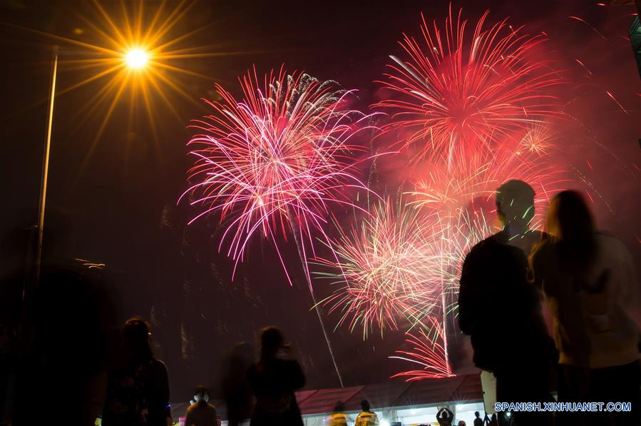 MACAO, enero 1, 2018 (Xinhua) -- Personas observan los fuegos artificiales durante la celebración del A?o Nuevo, en Macao, en el sur de China, el 1 de enero de 2018. (Xinhua/Cheong Kam Ka)