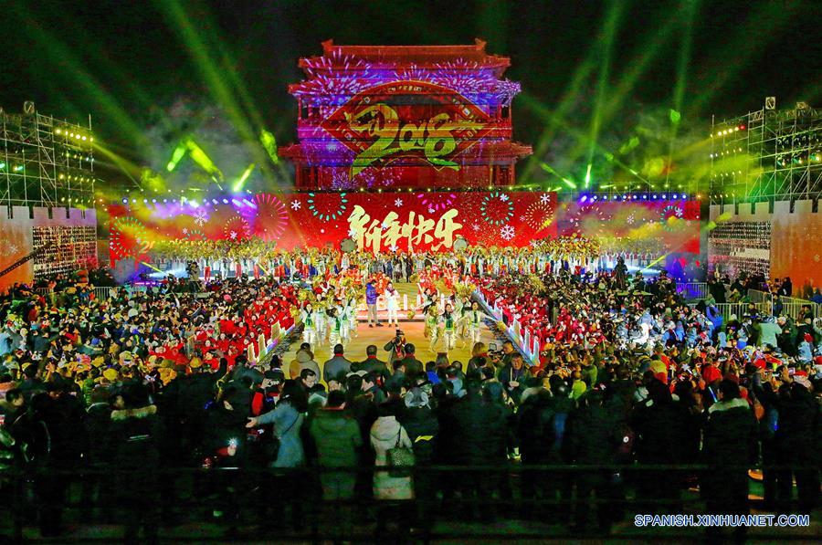 BEIJING, enero 1, 2018 (Xinhua) -- Imagen del 31 de diciembre de 2017, de personas actuando durante las celebraciones del A?o Nuevo, en la Plaza Yongdingmen en Beijing, capital de China. (Xinhua/Li Zhiming)