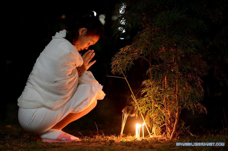 VIENTIAN, enero 1, 2018 (Xinhua) -- Imagen del 31 de diciembre de 2017, de una mujer asistiendo a un evento de oración por el A?o Nuevo, en Wat Nathom en Vientián, Laos. (Xinhua/Liu Ailun)