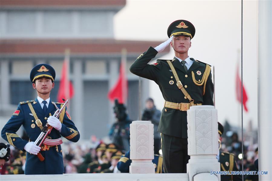 Un sonido que también indica el comienzo de una nueva rutina diaria para la Guardia de Honor del Ejército Popular de Liberación (EPL): izar la bandera nacional en la Plaza de Tian'anmen en Beijing. La ceremonia solemne la realizaba anteriormente una unidad de la policía armada.
