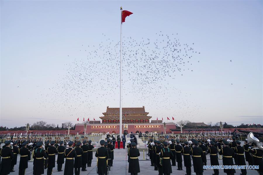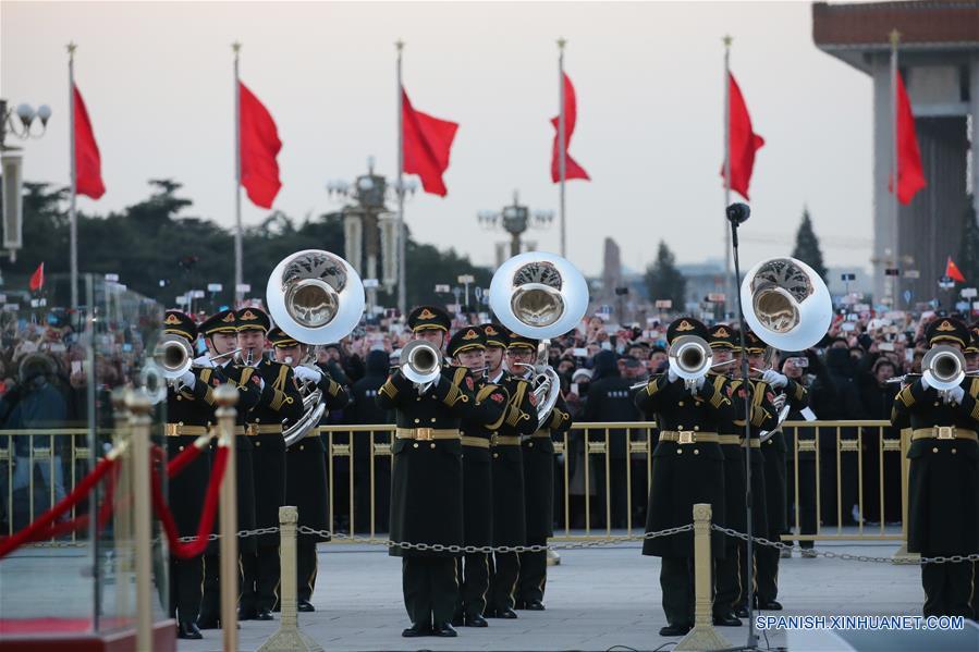 BEIJING, 1 ene (Xinhua) -- El sonido de las cornetas atraviesa el silencio de la ma?ana invernal en el centro de Beijing el primer día de 2018.